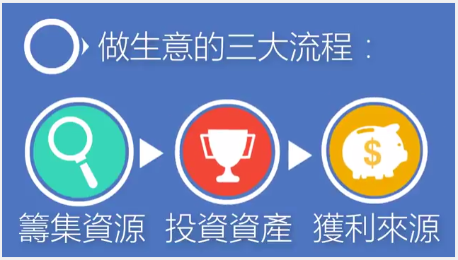 1.籌集資源 -> 2.投資資產 -> 3.獲利來源